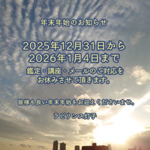 2025年12月31日(水)から 2026年1月4日(日)まで 鑑定・講座・メールのご対応を お休みさせて頂きます。